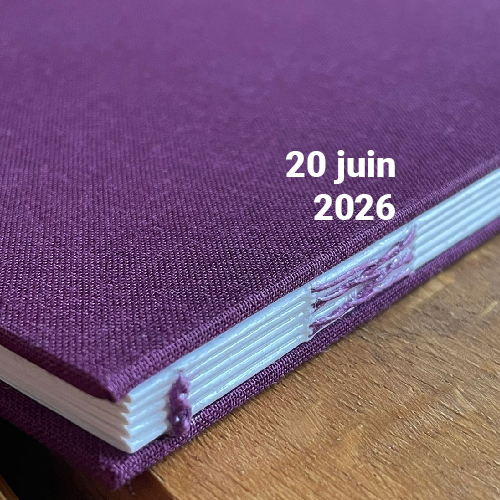 Réalisation d’un carnet en couture dite « copte » dans une couverture souple avec reliure « suisse ». Chaque participant repart avec un carnet ou un petit livre relié par ses soins.